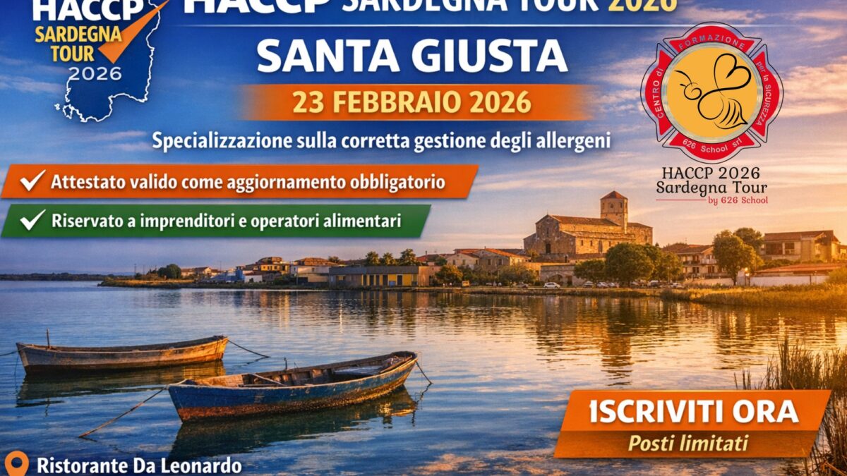 Santa Giusta si prepara ad accogliere una delle tappe più importanti del HACCP Sardegna Tour 2026, il progetto che sta attraversando la Sardegna per portare formazione specialistica e nuove competenze agli imprenditori e agli operatori del settore alimentare.
